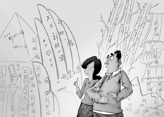 中国人是比较喜欢干“涂鸦”这种营生的。为此,旅美历史学者潘守勇先生分析,这是中国人传承多年的文化冲动,文化习惯与现代社会的公序良俗发生了冲突。也有人说,这是因为中国人善于书法,喜欢著书立传,一些游客手痒心痒书法抒情高涨。但我觉得,这是一种虚荣心在作祟、捣鬼。