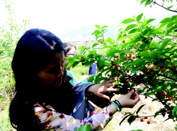 王哥庄西山社区的2万余株樱桃树分布在山间,红红的樱桃挂满枝头,摘一颗放在嘴里,甘甜可口。游客可以一边采摘一边登山健身。“一直以为王哥庄海鲜多,没想到樱桃也这么好吃。”17日,前来西山社区采摘樱桃的市民李女士说,20元采摘门票价格实惠,正好周末,她带着家人及朋友一起组团前来采摘樱桃,准备中午去海边吃个农家宴,下午再去茶园看看新茶,回去的时候再带上几斤王哥庄大馒头,这一趟下来收获不小。