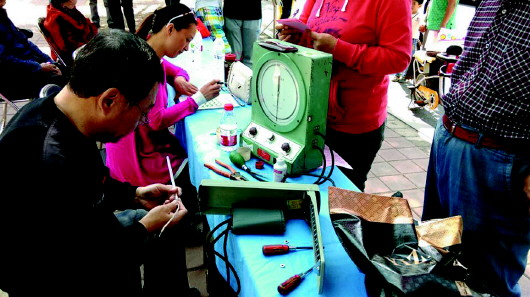 工作人员为市民免费检修血压计。