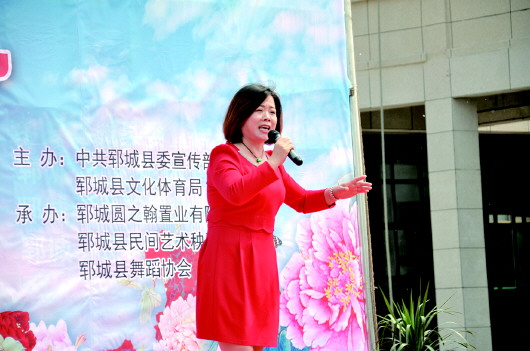 郓城剧协主席郁清表演戏曲《欢天喜地把我请》。