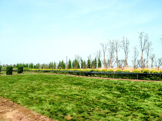 刚刚铺设的草坪,还在定期维护中。