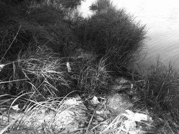 胜利桥南约50米处一管道不断有污水排出。 本报记者 徐良 摄