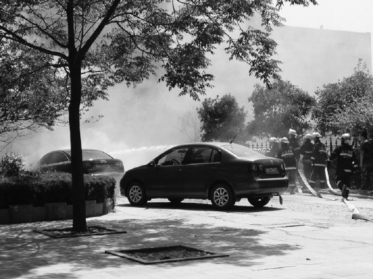 围观的市民越来越多,纷纷在猜测是“自燃”引起,有人猜测是车里放了易燃物品,例如打火机等,也有人猜测是因为被晒了太久造成。约3分钟后,博兴消防队员赶到进行灭火,很快大火就被扑灭,记者一直未发现车主。