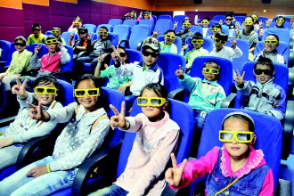 电影放映前,小记者们充满了期待,随后工作人员向小记者们介绍了4D电影的特点,并告诉小记者们,4D电影还将震动、吹风等特技效果引入到立体电影中,会给观众带来身临其境的感受。