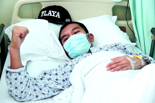 当记者问他康复后最想干的一件事时,他笑着说,“如果手术成功,康复后我会立即离开这个病房,到操场上走一圈,呼吸一下外面的自由空气。”