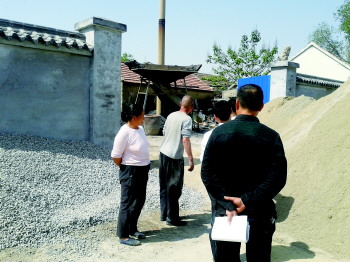 张店环保分局检查组要求相关单位清运堆放在路边的建筑物料。 本报通讯员 董兆风 摄