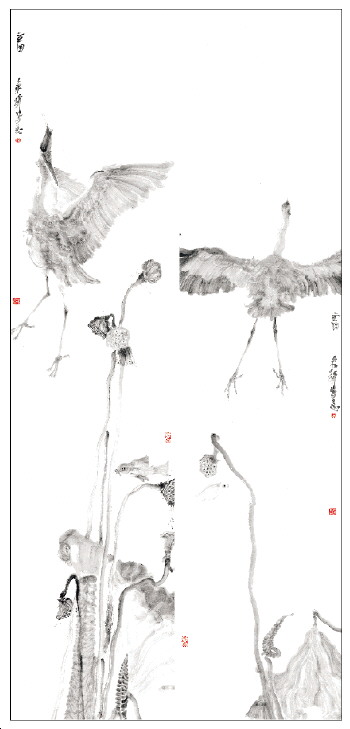 ◤周京新 苍鹭之一、之二 240cm×52cm×2