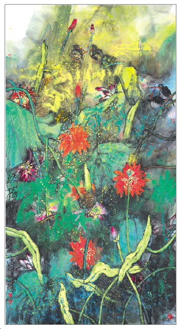 ◤叶烂 映日荷花图 180cm×97cm