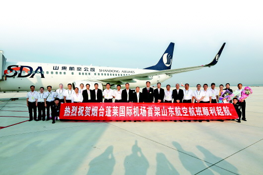 5月28日零时,山航SC9001航班平稳降落在烟台蓬莱机场跑道,减速后在引导车的指示下缓缓滑入停机位,这是首个在烟台新机场降落的航班,标志着总投资45亿元、建设工期历时3年多的烟台蓬莱机场正式启用。此后,又有六个山航航班在蓬莱机场陆续降落。28日上午7:10,山航SC4727航班第一个从烟台蓬莱机场顺利起飞前往南京。至此,山东航空本次转场工作顺利完成。