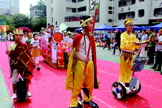 经五路小学举行花车巡游,庆祝儿童节。本报记者 李飞 摄