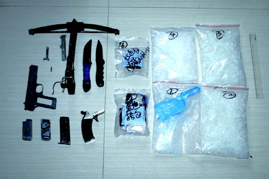 事后民警从“六哥”的暂住地及其车上发现了各两千多克冰毒,还在其床下发现了藏匿的仿制枪支、雷管、弓弩等作案工具一宗,“他说这些东西是网购的,贩毒若被发现,可便于逃脱,同时也是防止被黑吃黑。”专案组民警在辽宁及山西警方的配合下,又抓获两名贩卖毒品的犯罪嫌疑人,缴获冰毒200余克。