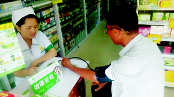 大篷车工作人员正在为市民测量血压。 本报记者 刘光斌 摄