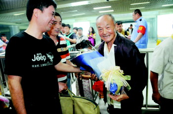 “儿子郑健陪同我一起到达北京,下了火车就有人帮我们拿行李,将我们接到了酒店里,有人给我们送鲜花,我们受到了最热烈的欢迎。”郑师玄说。
