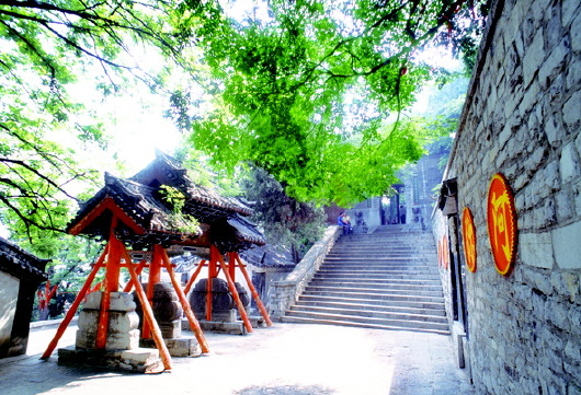 与泰山、灵岩山并称“鲁中三山”。主峰海拔395米,因五座横空出世的秀丽山峰而得名。群山绵延,水秀天青。91级台阶胜似泰山天阶,而绿树、黑瓦、红墙相映成趣,分外迷人。