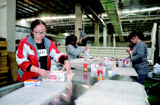 电商物流产业园区的建设是菏泽“大众创业、万众创新”的重要载体和动力引擎。12日下午,记者来到淘宝“特色中国”菏泽馆,只见云仓内一堆堆的促销商品被打包堆成了山,“我们三个人每天从早上8点就上班开始打包,最晚要到晚上9点才能下班,一个产品每天能打包2000份左右。”一位正在打包快递的工作人员说,正是为即将到来的大促销活动做准备。