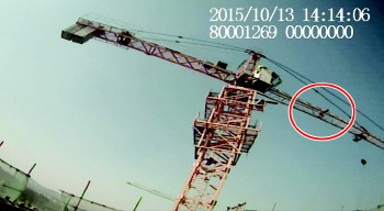 王某(圆圈处)在塔吊上欲轻生。(图片由警方提供)
