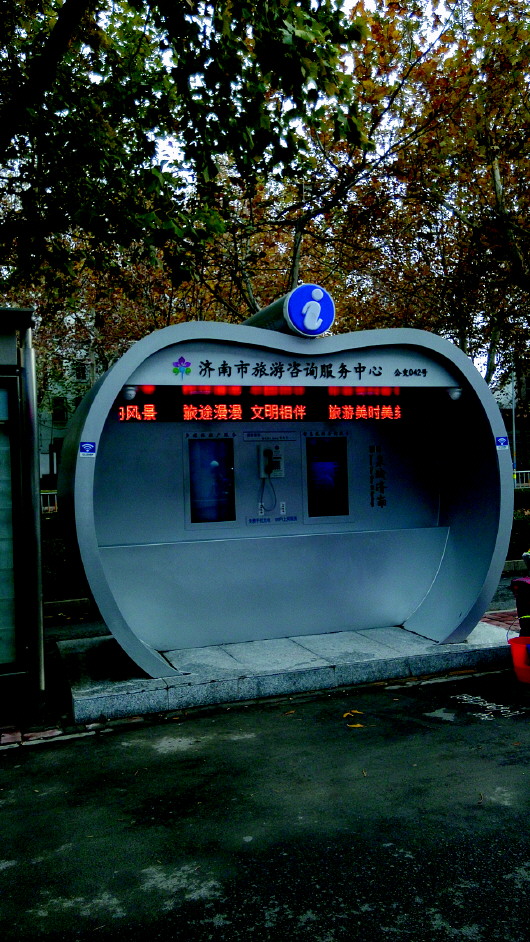 本报11月18日讯(记者 万兵) 18日,记者从济南市旅游信息中心了解到,不少设在公交站牌旁的旅游咨询服务亭已进入验收阶段。这些服务亭可以提供免费充电和WiFi上网服务,通过查询服务系统,还能轻松获取各种旅游资讯。