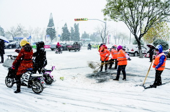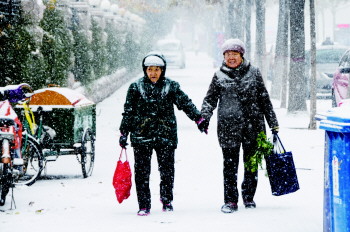 11月24日,今冬首场降雪来得格外迅猛,短时间就给城市披上一层银妆,人们欣喜着与初雪来一次亲密接触。而道路也变得湿滑,城市节奏变慢,千余名环卫工上街扫雪,交警全员上岗保障交通,亲人之间朋友之间相互照顾搀扶,带给彼此冬日里的温暖。