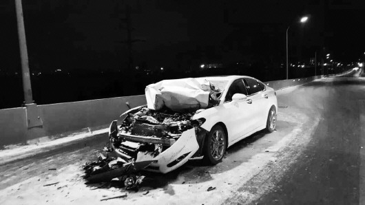 桥面结冰,车辆打滑出事故