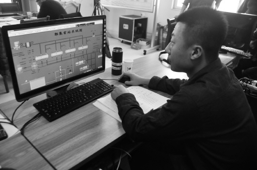 对换热站点进行实时监控的工作人员。