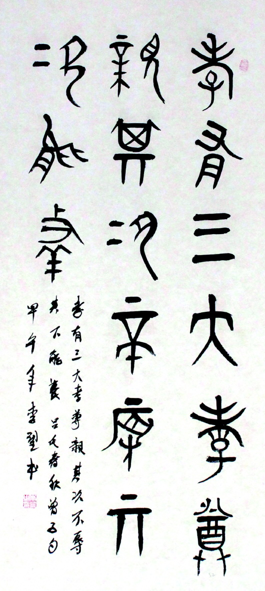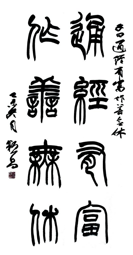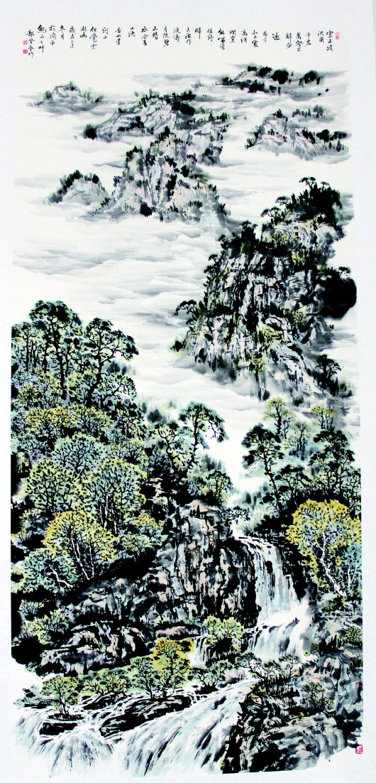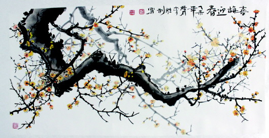 画家李胜利的《喜梅迎春》展现出寒冬腊月里梅花傲雪盛开的坚强品格;郭登泉的《云山清流》则展现出千岩万壑的胸襟气度……除了书画作品吸引众人围赏,一批优秀的书法作品同样引人入胜。书法博士张颖昌也携自己的篆书作品参展,被赞“功夫了得”。为此,也挑选了部分优秀作品,刊登出来以飨读者。