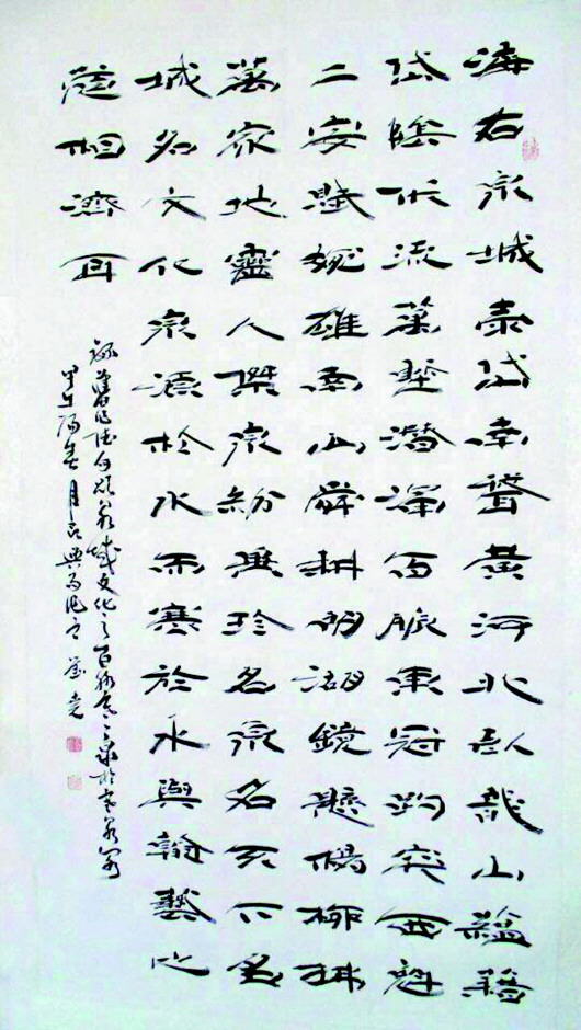 为活跃高新区浓厚的文化气息,迎接即将到来的新春佳节,本报与高新区书法家协会联合主办高新区第二届“迎新春·书画展”活动。自向社会征集优秀书画作品以来,主办方已经收到来自书法界和书画界诸多爱好者提交的作品数百幅。16日,经过遴选之后,一些优秀作品在大明湖畔的明湖湾进行展览,书法博士张颖昌也携作品参展。