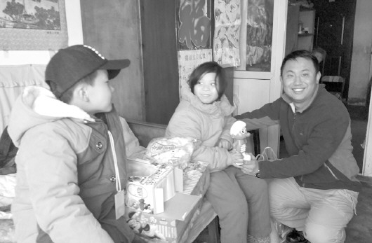 爱心人送来零食、玩具和书包,苏梦瑶(中)非常开心。 本报记者 尹明亮 摄