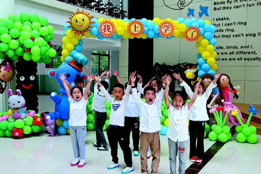 2015年9月1日,济南市宝华小学一年级新生开学,孩子们兴奋不已(资料片)。