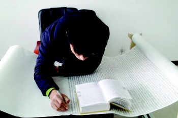 近两万个字一笔连体写成,中间没有间断,每个字大小不足1平方厘米且字字“空心”。平度80后小伙侯坤用3个月时间书写的共19950个连体空心字,被授予“大世界基尼斯之最——最小的连笔空心字”称号。