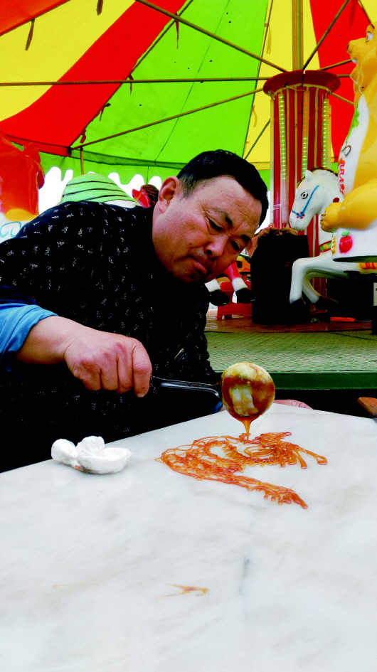 庙会上的民间艺人。