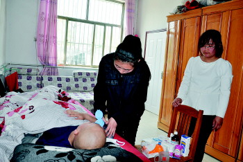 仝梦珠在悉心照料丈夫。