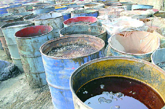 执法人员在现场查处的由山东金诚重油化工等6家企业倾倒的危险废液。(资料片)
