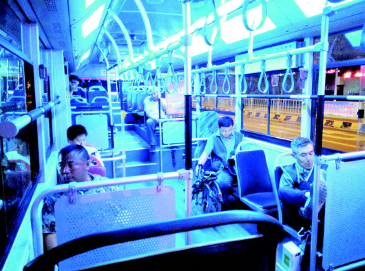23点30分左右,102路公交车上乘客稀少。 见习记者 张永宽 摄