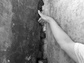经过多天的观察,赵先生总结出了开裂的规律:“主要是从地下开裂的,好像房子整体往西移动了。”赵先生的西户邻居家也出现了开裂现象,其中一户大门门口的水泥地出现了四五厘米的裂缝。