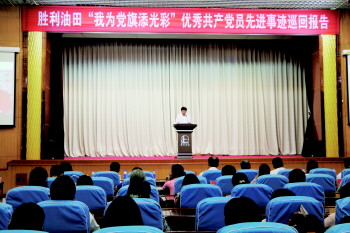 近日,由胜利油田“两学一做”学习教育组织协调办公室组织的“我为党旗添光彩”优秀共产党员先进事迹首场巡回报告会在高培党校举行,来自12家二级单位共计400余人聆听了报告。会上,7名报告团成员先后用生动形象的语言,讲述了自己在平凡岗位上敬业奉献、弘扬正气、保效创效的先进事迹,真实感人的事迹让观众动容。现场观众表示,要以先进典型为榜样,传承弘扬优良传统,带头践行社会主义核心价值观,聚合“正能量”、释放“正效应”,努力把学习教育焕发出来的热情干劲,转化为战寒冬、求生存、谋发展的强大动力,为推动油田持续稳定和谐发展作出新贡献。 本报记者 邵芳 摄影报道