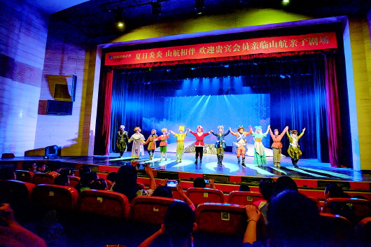 活动现场座无虚席,主持人向会员代表们展示了山航的发展历史,并介绍了航空相关服务产品和常旅客禁兑期放开等优惠政策,之后的三轮有奖知识问答更是将热场活动带向了高潮。随后演出正式拉开帷幕,绚丽多彩的舞美造型、扣人心弦的故事情节、动感的音乐舞蹈、惟妙惟肖的舞台表演,都令嘉宾们目不转睛。演员和贵宾进行了多次互动,精彩的演出赢得了在场会员和小朋友们的阵阵喝彩。