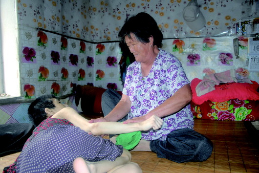 赵桂兰悉心照料女儿近半个世纪。 本报记者 刘震 通讯员 解泉声 摄