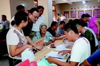 在拆迁补偿协议签订现场的一侧,一座由百元大钞堆成的现金小山格外抢眼,负责发放现金奖励的工作人员不时用验钞机点验出一摞摞百元大钞准备发放给已经签完协议的居民。