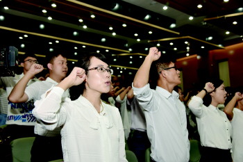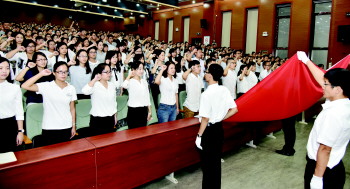 青岛市教育局副局长王洪琪介绍,青岛自2001年在全国率先建立教师宣誓制度。16年里,每年教师节期间,全市中小学教师都积极参加宣誓活动并认真履行自己的誓言。新教师入职宣誓已成为新教师培训的重要一课。