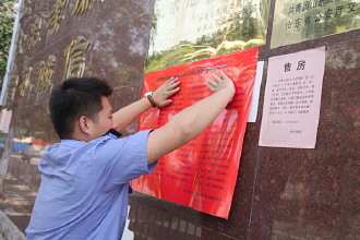图为工作人员正在校门口张贴合格“校外托管机构”名单。