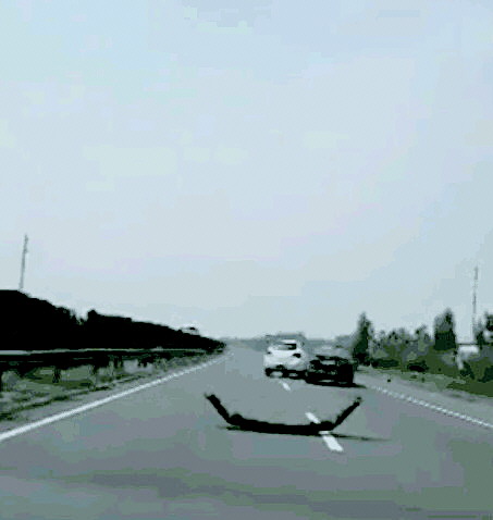 可能是屡屡超车不成功,黑色轿车驾驶员突然驾车撞向了白色越野,一次、两次……连续撞击。黑色轿车的保险杠脱落在地,但两车依旧没有停止疯狂举动。