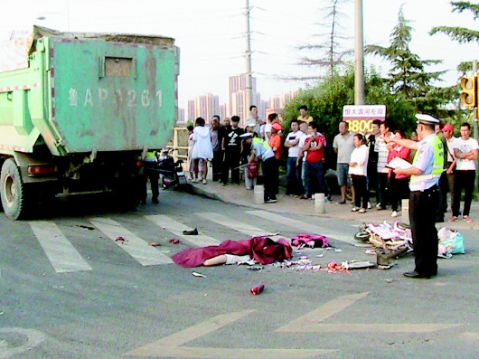 路某一家还沉浸在失去爱女的伤痛中,又一起惨烈的事故发生了。9月12日下午4点40分左右,市民赵女士骑着电动车带着放学归来的8岁女儿回家,在行驶至滨河南路水屯桥时被一辆渣土车卷入车底。