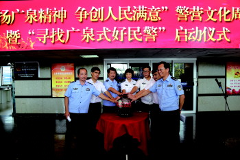 当日上午10时许,在济宁市中区公安分局大厅,与会来宾共同启动激光球,本次活动正式开始。启动仪式后,参加本次活动的与会来宾共同观摩了“弘扬广泉精神、争创人民满意”书法、美术、摄影展。
