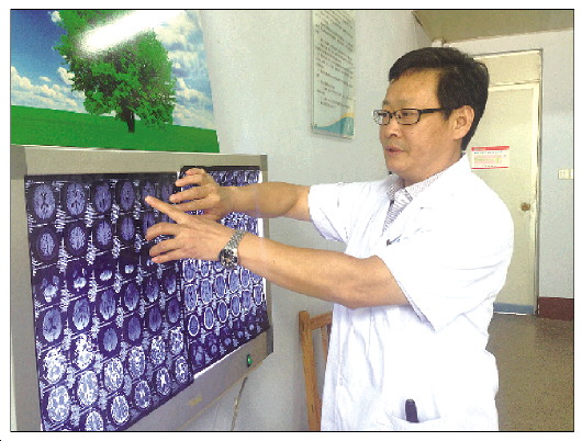 莱芜市人民医院神经内科主任亓勤德正在研究患者病情。