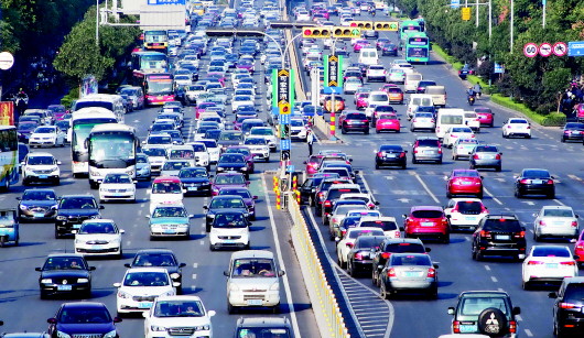 9月22日是世界无车日,济南经十路车满为患。