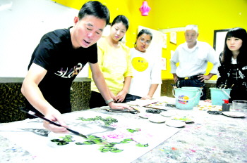 22日上午,国画老师正为银河少年培训中心的老师上课。当日,中心专门聘请国画老师培训国画老师,提升她们的教学水平。 本报记者 张晓科 摄