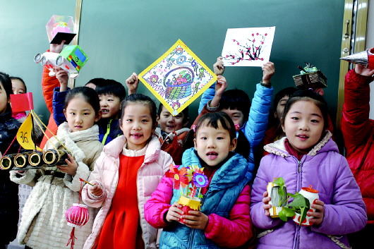 孩子们展示特色作业。(资料片)记者 李飞 摄