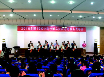 本报10月16日讯(记者 匡璇) 10月14日,2016年日照10K公路沙滩马拉松志愿服务表彰会在日照职业技术学院隆重举行。会议表彰了2016年日照10K公路沙滩马拉松赛事服务中先进志愿者集体和个人,总结回顾了赛事筹备历程及志愿者工作的成功经验。