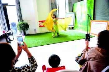 台上,5号选手小如身穿舞衣,随着音乐翩翩起舞,精彩的肚皮舞表演赢得台下观众的一片掌声。“能参加此次文化节感到非常开心。为了让演出效果更好,虽然天气很冷,我也坚持排练了一段时间。”