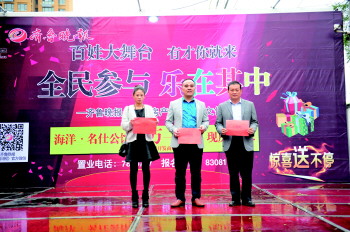 10月22日,主办方还将举办决赛,如果您也想参加,只要你有才,不分男女和老少,不论团体还是个人,都可以关注齐鲁晚报今日日照微信,点击百姓才艺进行报名。线下还可在齐鲁晚报办公室、海洋名仕公馆营销中心、大润发一楼入口处报名。凡是10月22日到访的客户均可获得精美礼品一份,在最终的决赛中,参赛选手和现场观众都有机会获得液晶电视和两室一厅价值30万现房认购权。